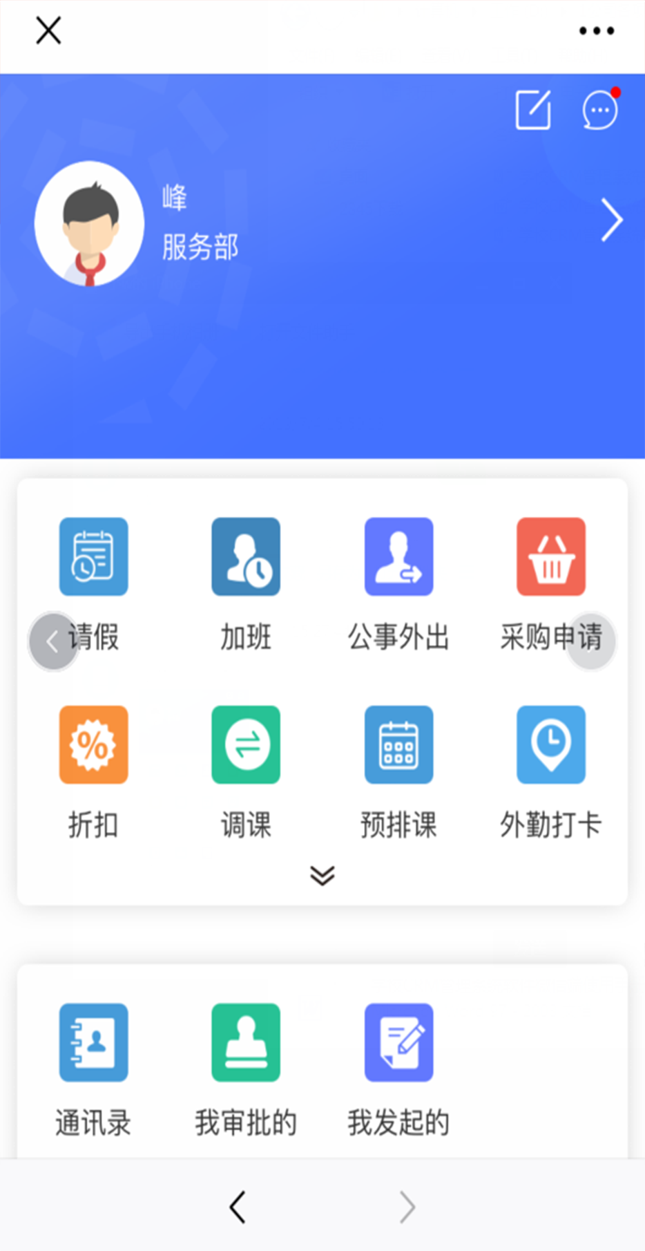 九天教育管理系统软件为微信端,是一款教育行业的CRM管理系统,帮助员工线上申请请假、加班、公事外出、采购申请、调休、离职、调岗等;员工为学员线上申请折扣、申请体验课、申请预排课、申请调课消课等;学生以及家长在线上查看课时明细、课程、课表、课程资料、申请请假、申诉课程、评价老师等。