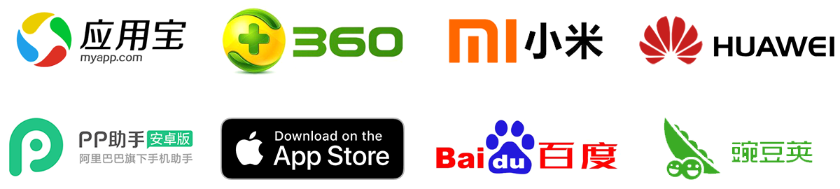 360、应用宝、AppStore、华为、百度、PP、豌豆荚、小米等各大应用平台。