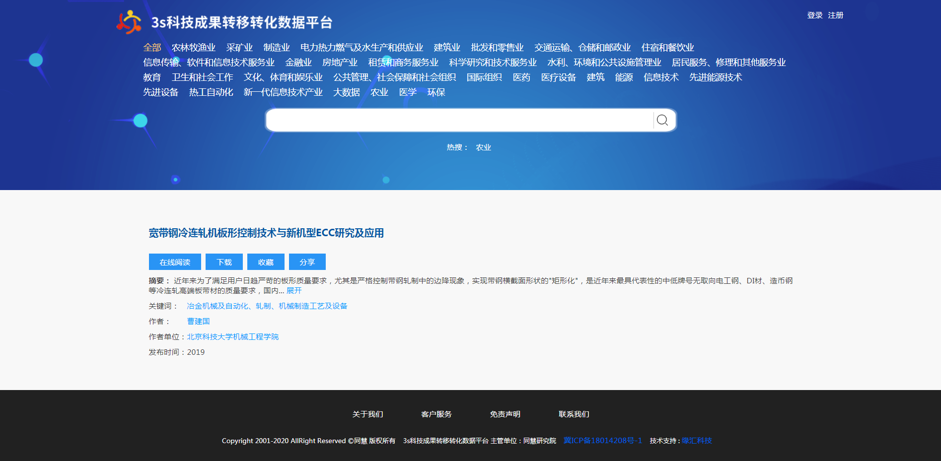 3S科技成果转移转化数据平台是以两届京津冀高校科技成果对接会收录1700多项科技成果为基础,建设京津冀高校科技成果数据平台,与高校搭建良好的校企合作关系,促进高校的科技成果转移转化,提升保定企业的科技创新能力,促进京津冀产业升级。