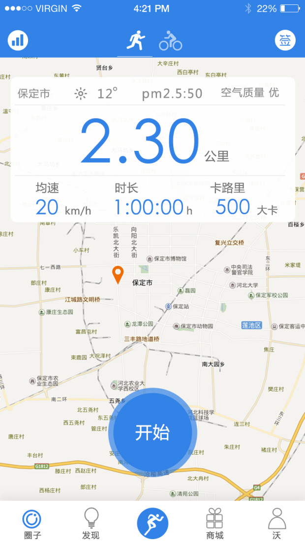 本软件是由中国联通网络通信集团工会保定市委员主导研发,由保定市缘汇软件开发有限公司承做,本软件意在提高联通大家庭的家人们身体健康,让大家积极参加到运动中来。本软件记录跑步与骑行两种运动模式的运动里程,根据GPS在地图上绘制运动轨迹。根据运动情况会有相应的奖品奖励,通过运动获得的积分可在商城中换取相应的奖品。本软件还做了特殊的奖励处理,在运动到相应程度时会得到相应的奖牌奖励。