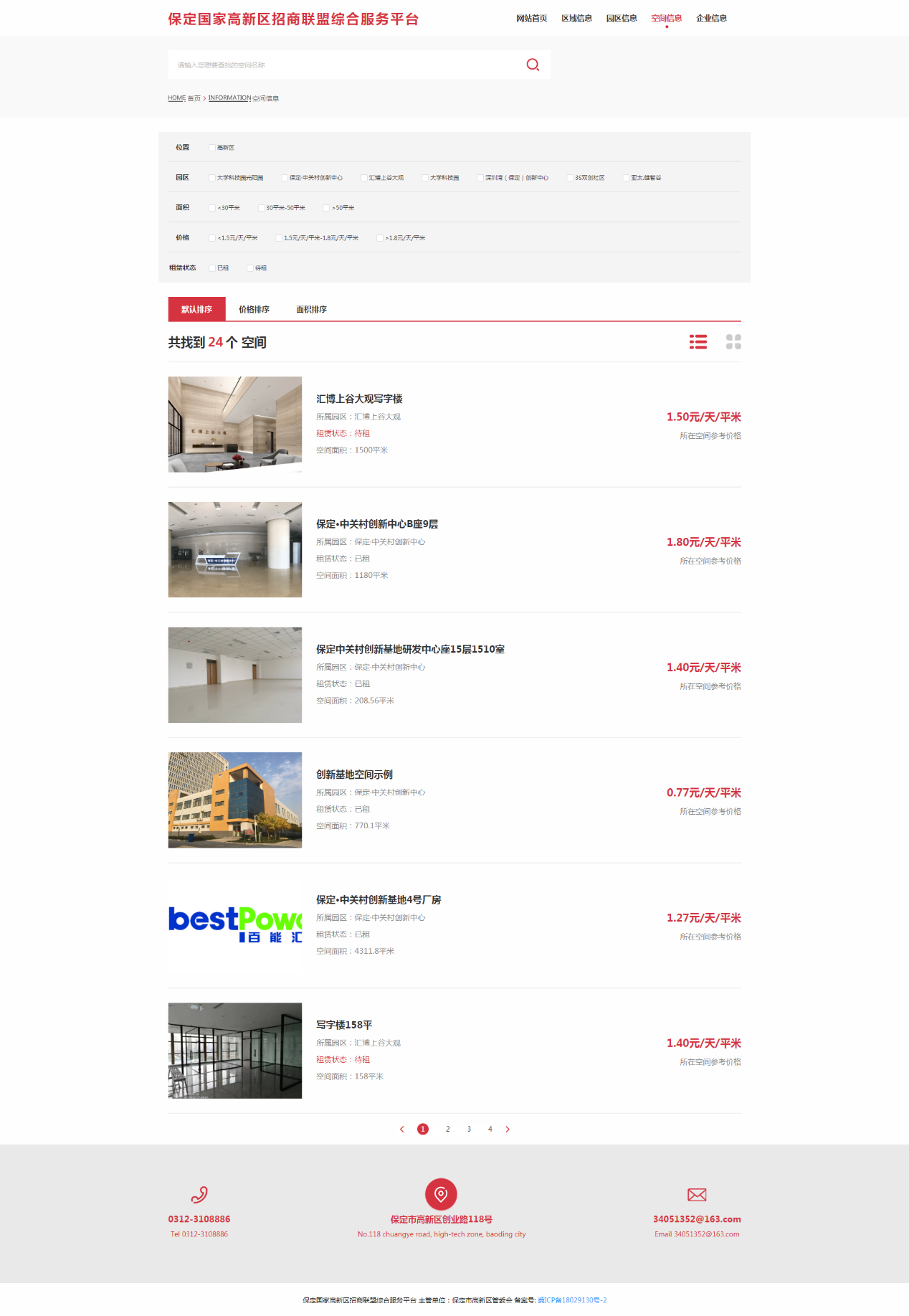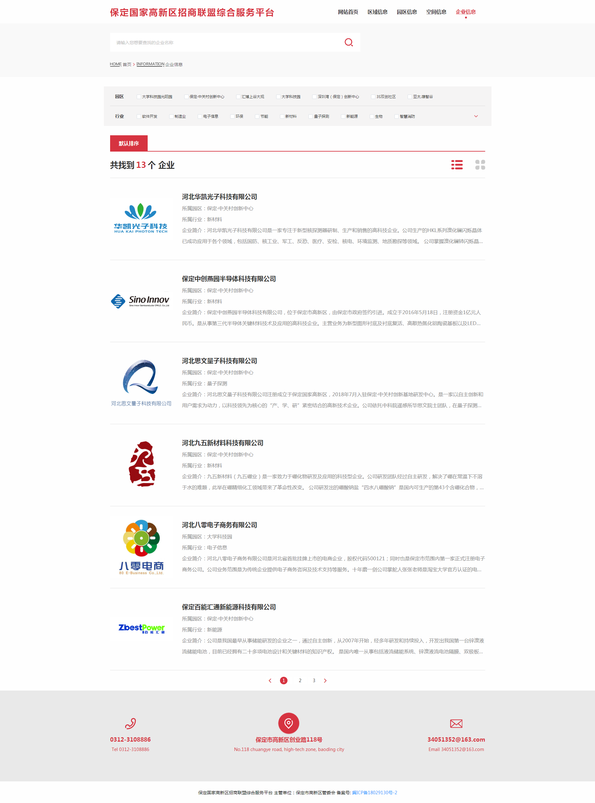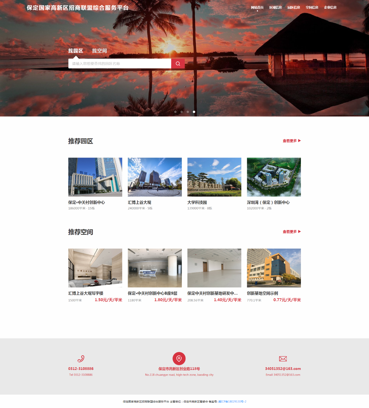 保定国家高新区招商联盟综合服务平台是一个组建全区标准厂房、写字楼的智能化管理系统,涵盖全区现有孵化器、产业园区和商业写字楼的基本信息、入驻情况等,让投资者更加直观地了解高新区项目入驻的物理空间,结合自身需求快速植入创新创业基因,加快产业培育步伐,同时可增强对新入驻企业的动态化管理。