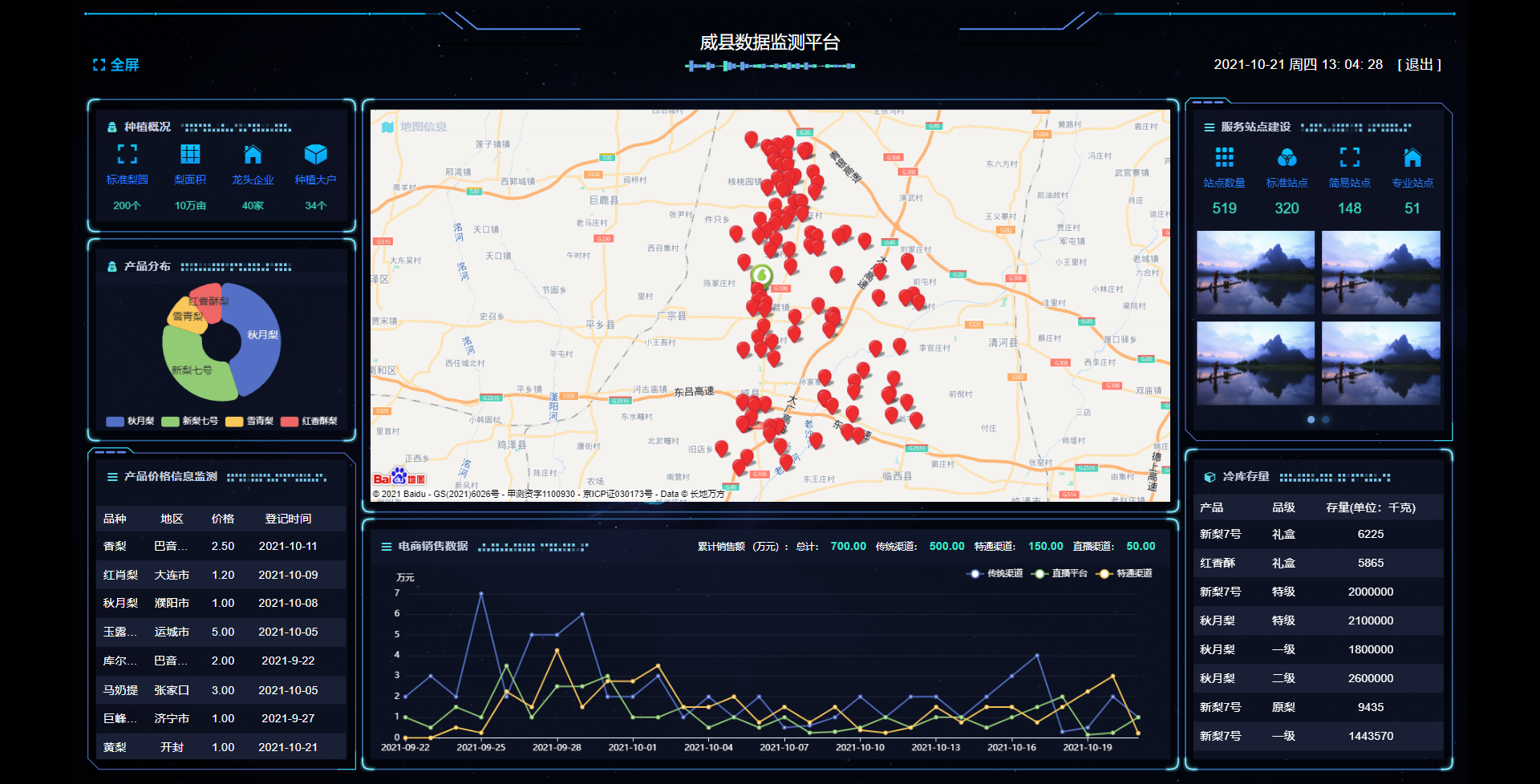该软件适用于检测果园的种植状况,产品价格信息,冷库存数据检测统计,市场的价格信息和服务站点的建设情况。实现批量导入的功能。