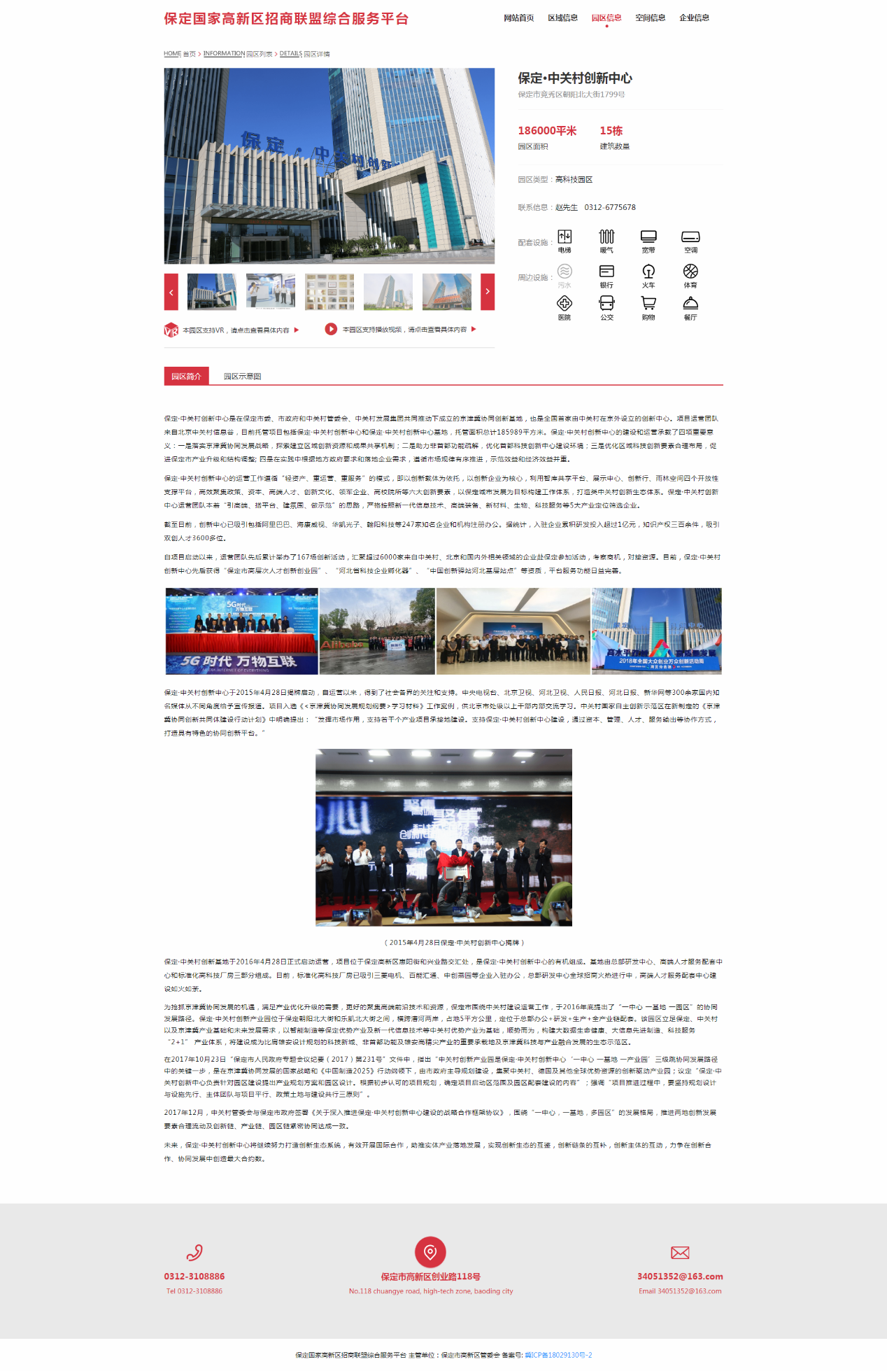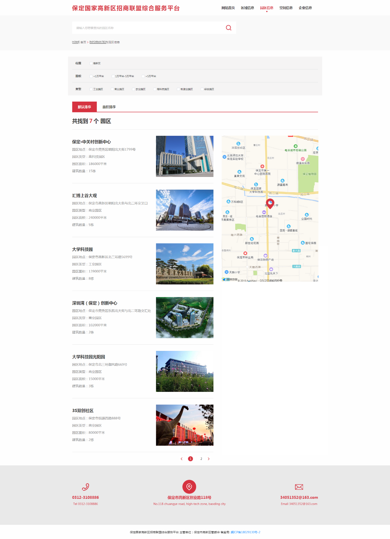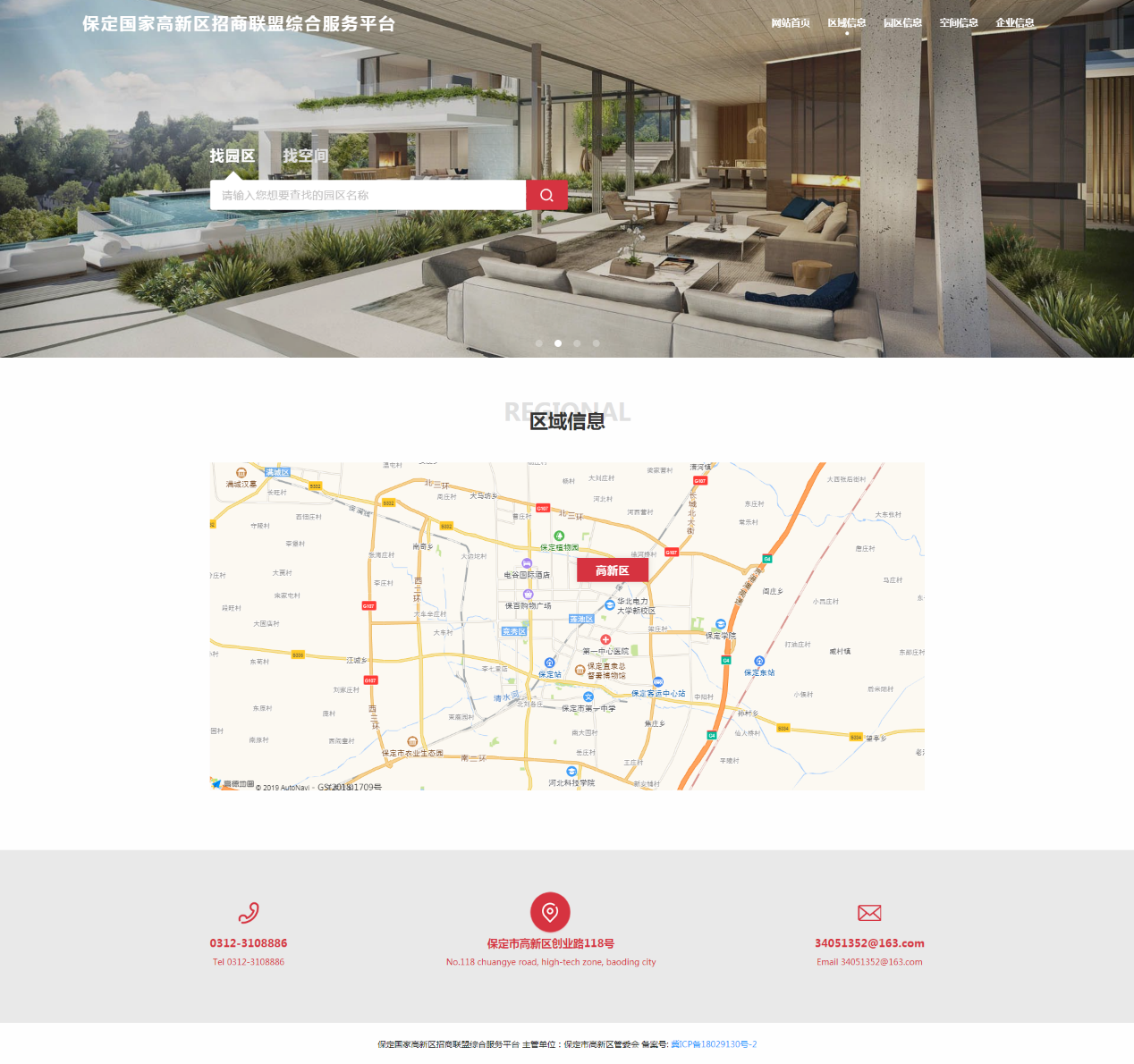 保定国家高新区招商联盟综合服务平台是一个组建全区标准厂房、写字楼的智能化管理系统,涵盖全区现有孵化器、产业园区和商业写字楼的基本信息、入驻情况等,让投资者更加直观地了解高新区项目入驻的物理空间,结合自身需求快速植入创新创业基因,加快产业培育步伐,同时可增强对新入驻企业的动态化管理。